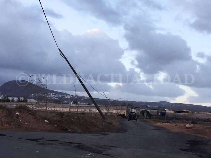 Telde.- La borrasca Ana ya es historia, pero no así la inestabilidad atmosférica. El frente atlántico ha abandonado las Islas dejando a su paso nubosidad dispersa y viento que sopla con intensidad y que en la ciudad de Telde ha provocado la caída de árboles y postes de luz, y también el desplazamiento de contenedores de basura.