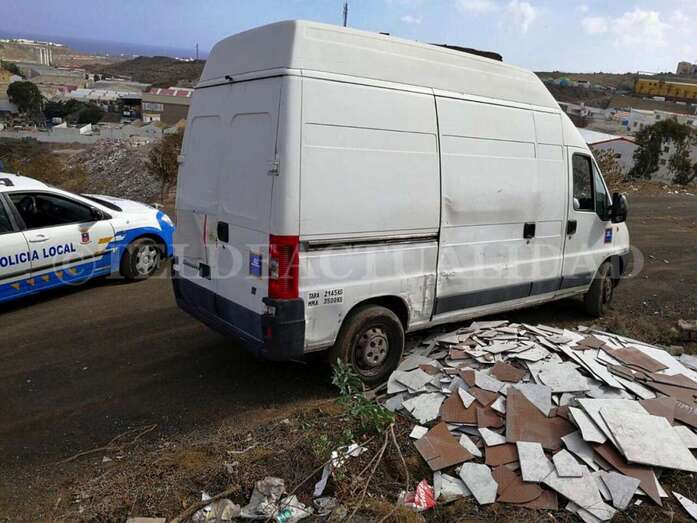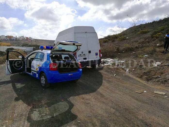 Un vecino de la zona observó cómo un vehículo, un furgón de color blanco y con las placas de la matrícula tapadas con paños, se adentraba por un camino de tierra en actitud sospechosa. Inmediatamente alertó a la Policía Local de Telde, que envió una patrulla.