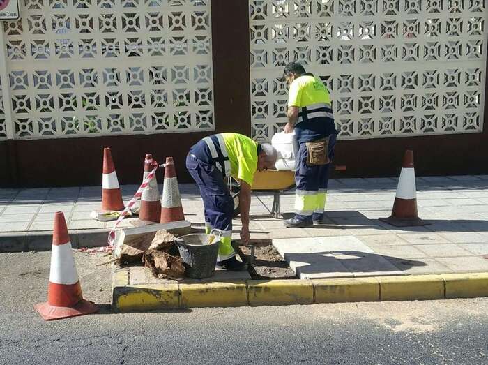 Operarios tapando el alcorque donde había un árbol que fue talado (Foto TA) Operarios tapando el alcorque donde había un árbol que fue talado (Foto TA)