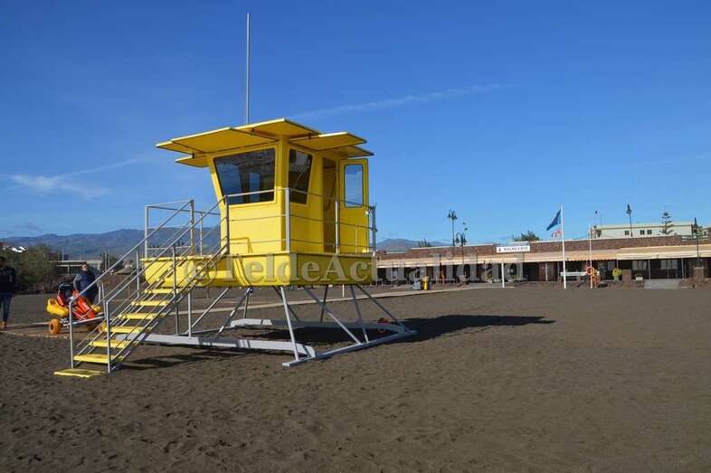 La cala teldense de Melenara ya luce una torreta de salvamento como las que Mitch Buchannon y sus compañeros socorristas tanto pusieron de moda en la década de los 90 en la playa californiana de Santa Mónica, en la archiconocida serie televisiva Los vigilantes de la playa.