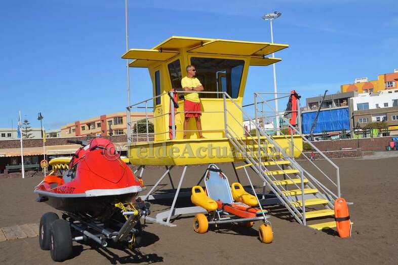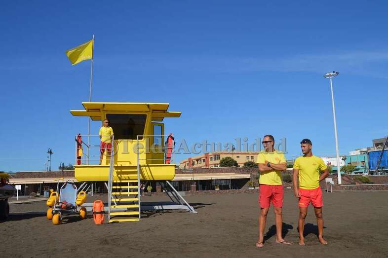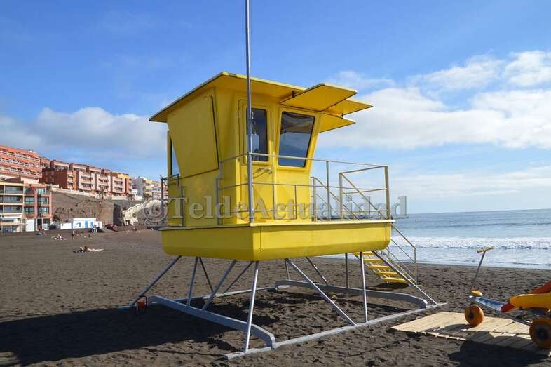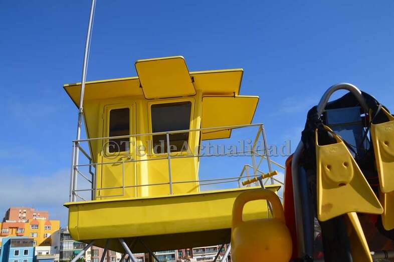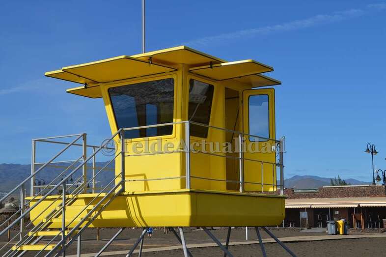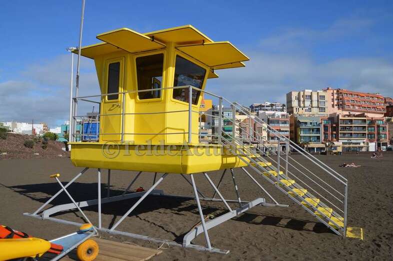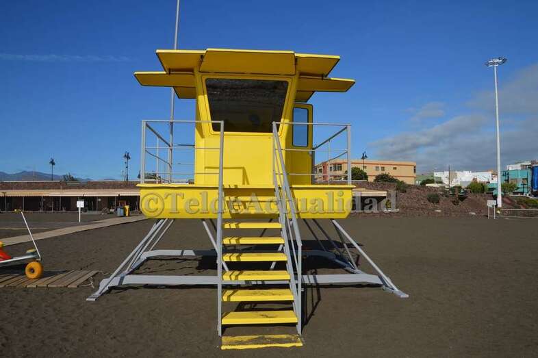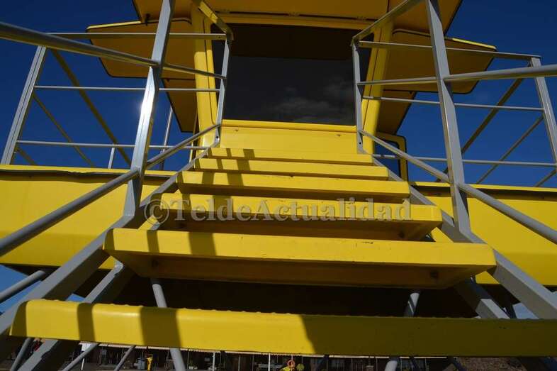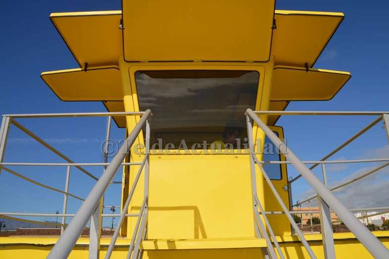 Telde.- Los socorristas de la empresa Pro-activa que presentan el servicio de salvamento en la playa de Melenara cuentan desde este martes con una torreta de vigilancia. Una llamativa estructura de color amarillo adquirida por poco más de 19.000 euros y que sin duda contribuirá a mejorar la seguridad en esta cala teldense, la de mayor afluencia del municipio.