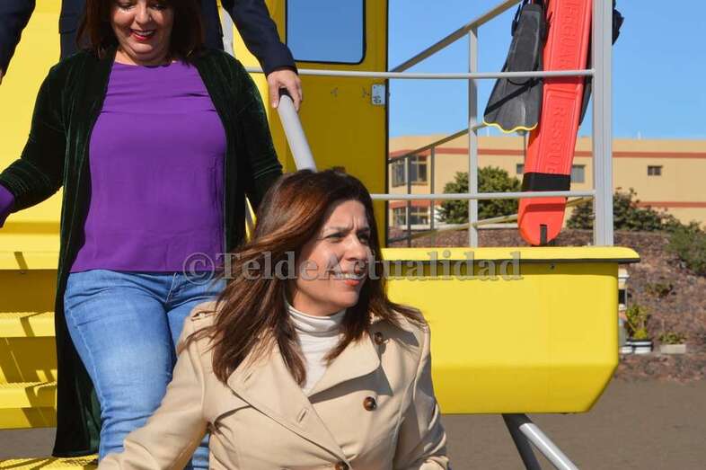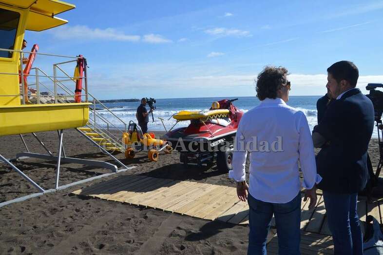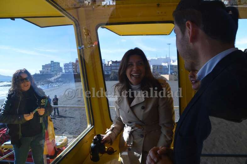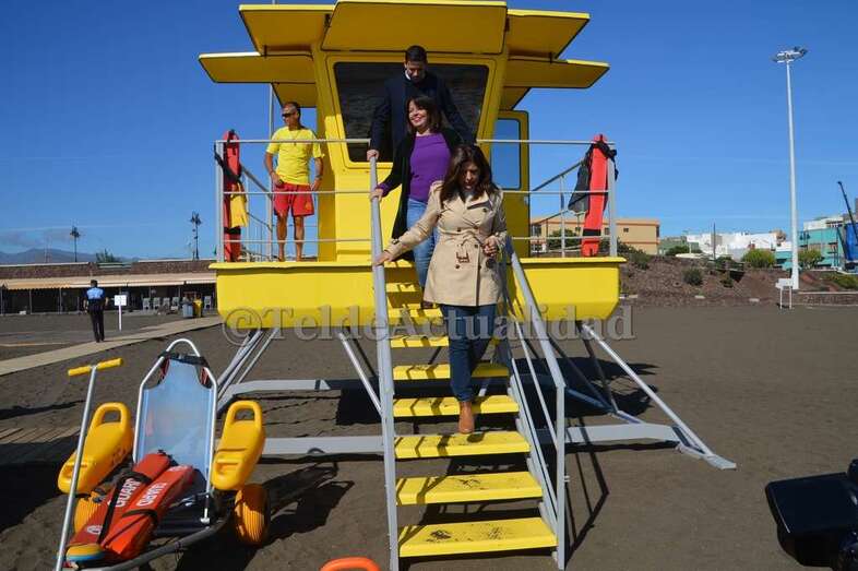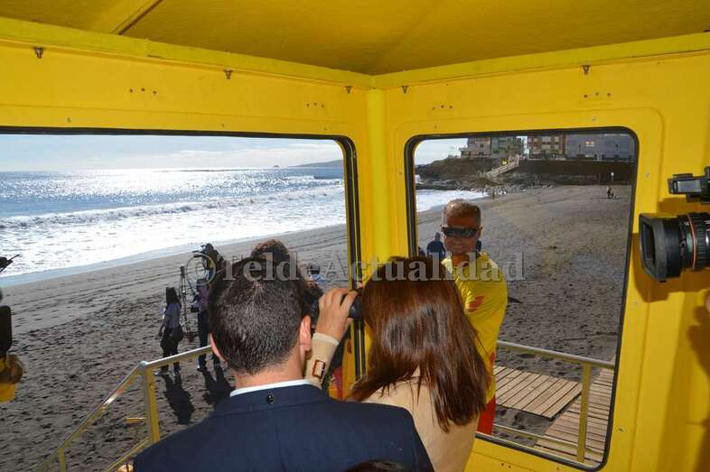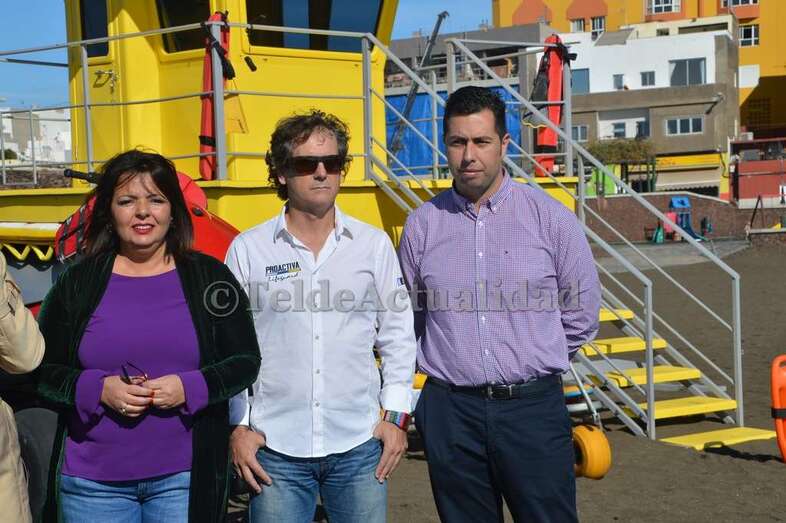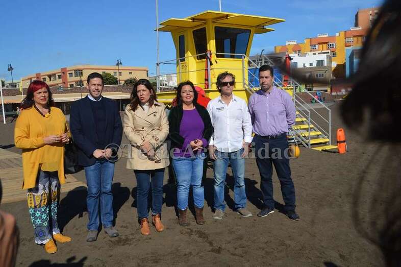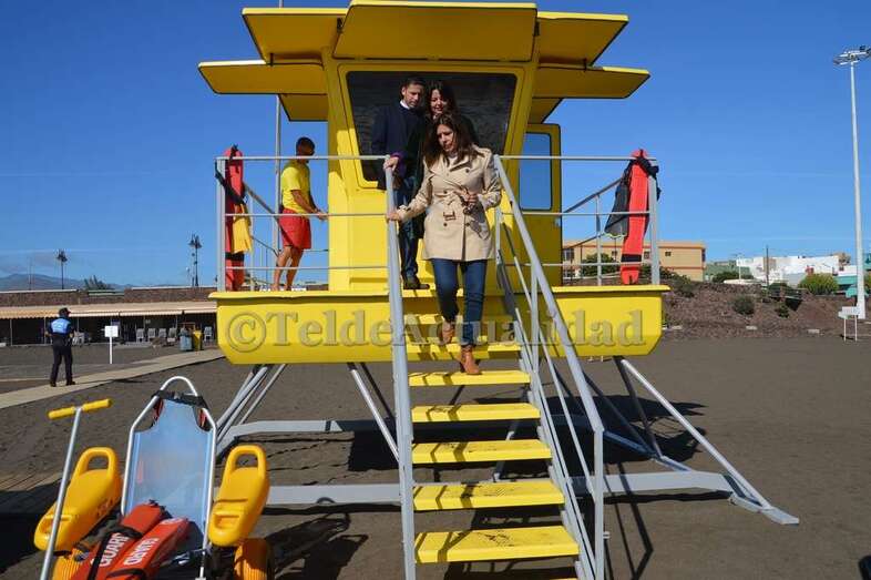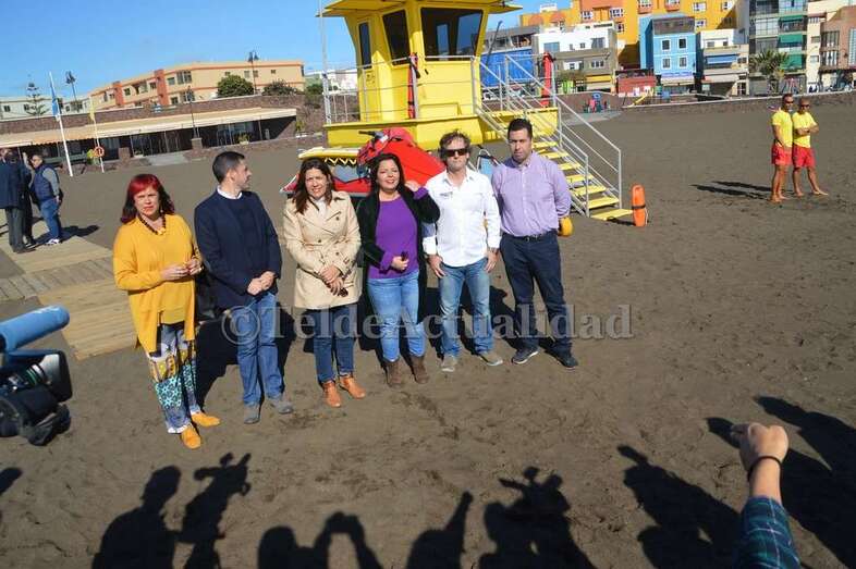 Este martes entró en funcionamiento tras un acto de inauguración al que asistieron la alcaldesa Carmen Hernández; la concejala de Playas, Gloria Cabrera, y la de Participación Ciudadana, Saro Sosa; el edil del PSOE Alejandro Ramos como representante de la oposición; el director general de Infraestructura Turística del Gobierno de Canarias, el teldense Héctor Suárez; y el responsable en Canarias de la empresa Pro-activa, José Luis Esmoris.