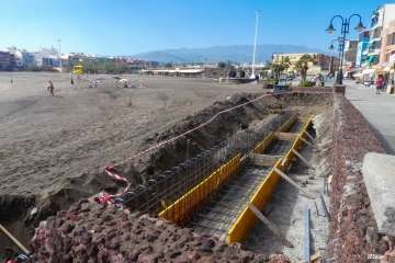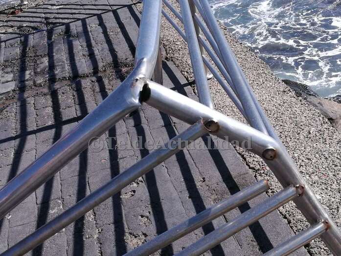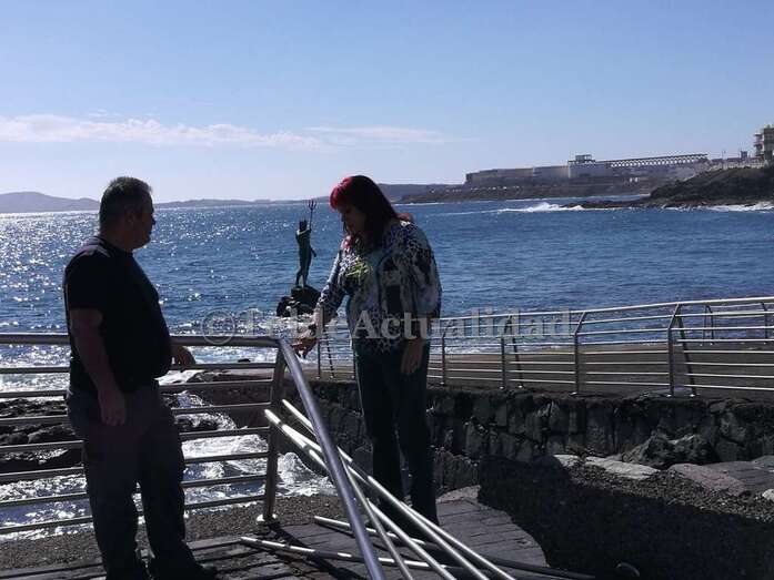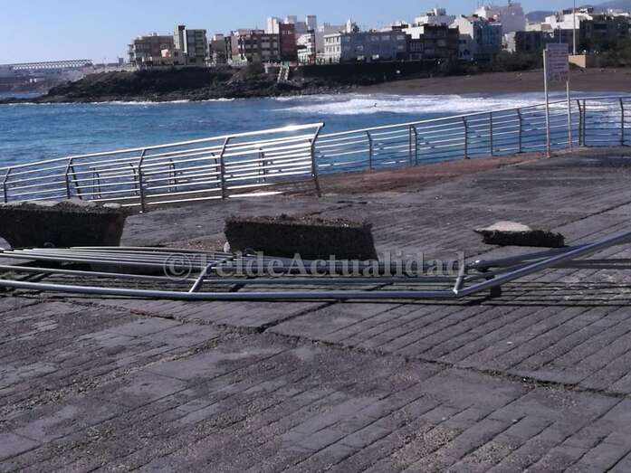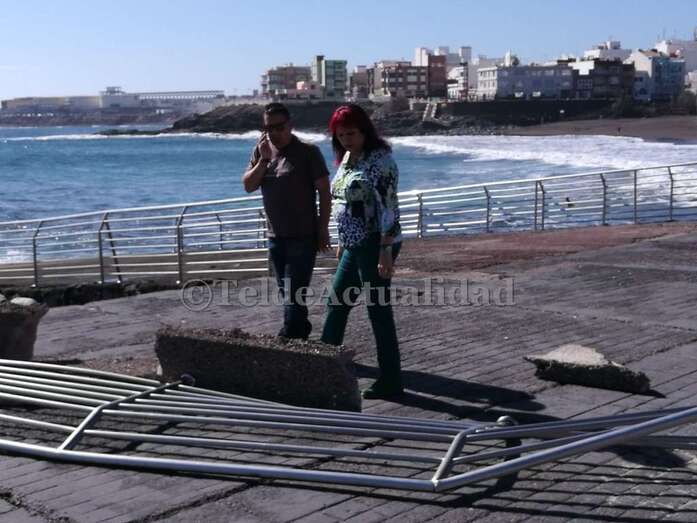 Tal y como informó TELDEACTUALIDAD, parte de esta estructura de acero inoxidable fue abatida por el fuerte oleaje de los últimos y desde el área de Playas se estudia ya el arreglo de los destrozos.