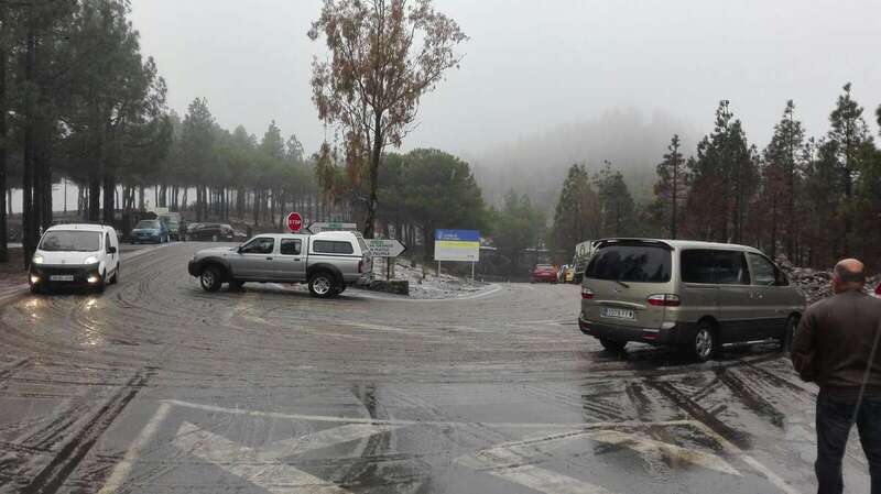 Telde.- Los copos de nieve ya caen sobre la cumbre de Gran Canaria. A pesar de la lluvia, ha empezado a cuajar y un fino manto blanco cumbre desde la Cruz de los Llanos hacia el Pico de las Nieves, a 1.942 metros sobre el nivel del mar. Se están formando placas de hielo en algunas carreteras, lo que supone un gran peligro para los conductores. La carretera de Los Picos permanece cerrada al tráfico y el Cabildo pide a los visitantes que vayan abandonando la zona. Todas las vías de accesos al centro de la Isla se cerrarán a las 19.00 horas. Siga al final de la noticia para estar al tanto de las incidencias del temporal.