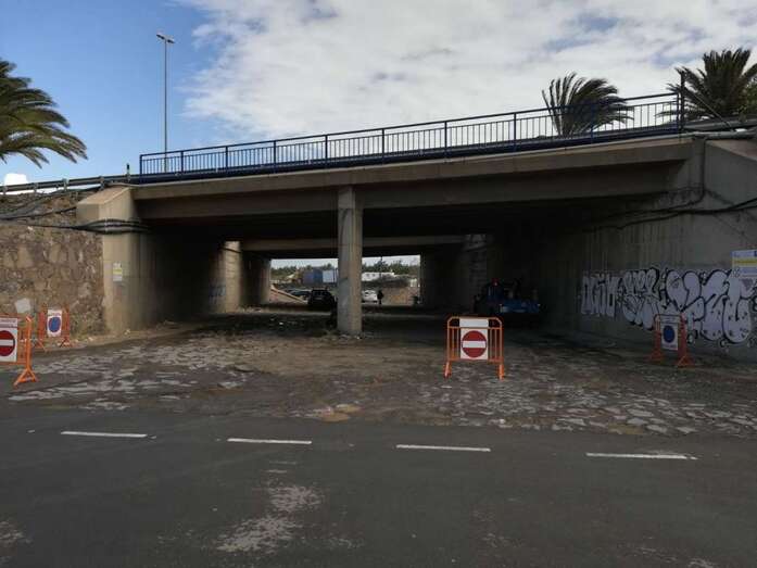 Las últimas trombas registradas en Telde han dejado pequeñas inundaciones bajo el paso elevado de la GC-1 sobre el polígono industrial de El Goro y en los accesos al núcleo costero de Tufia.