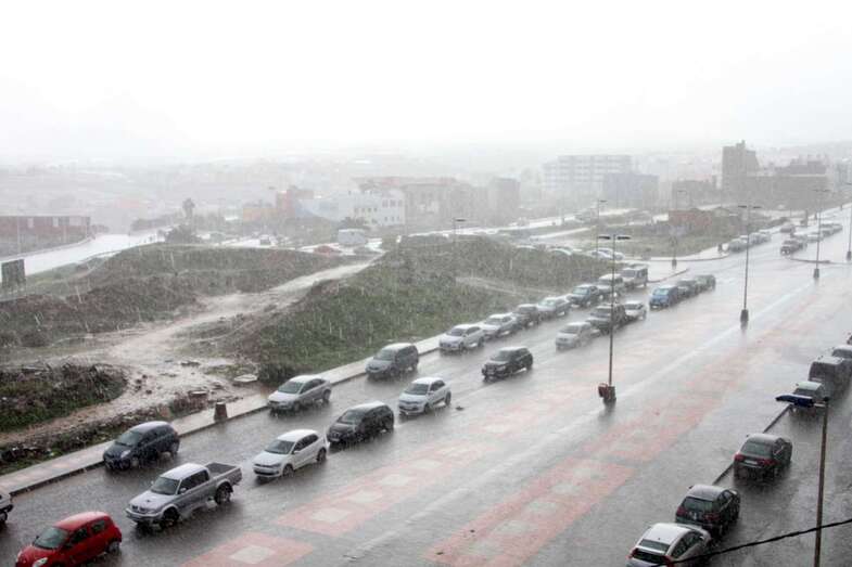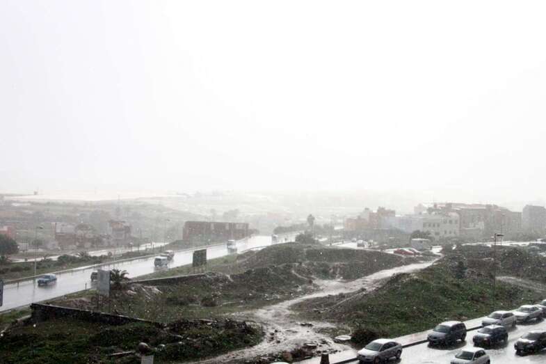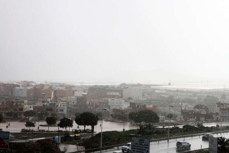 Con la caída de la tarde empiezan a descender las temperaturas (14.5 grados en la zona del Aeropuerto y 11.5 en Lomo Magullo), lo que ha propiciado que se produzcan precipitaciones en forma de granizo en algunas zonas altas de Telde, como en La Medianía.