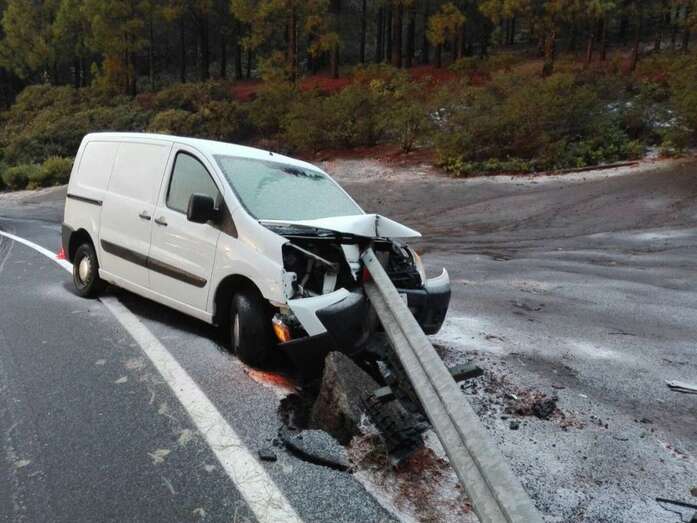 Desde primeras horas de la mañana el Servicio de Carreteras revisa el estado de todas las carreteras, especialmente de los accesos a la zona de cumbre. Estas carreteras han amanecido heladas, pero no se ha producido ningún accidente relevante. No obstante, esta situación entraña mucha peligrosidad para los conductores, especialmente ante un colapso de vehículos. Prueba de ello es el deslizamiento que un furgón sufrió a última hora de la tarde de ayer. Acabó con la parte delantera destrozada al empotrarse contra el saliente de un guardarrail.
