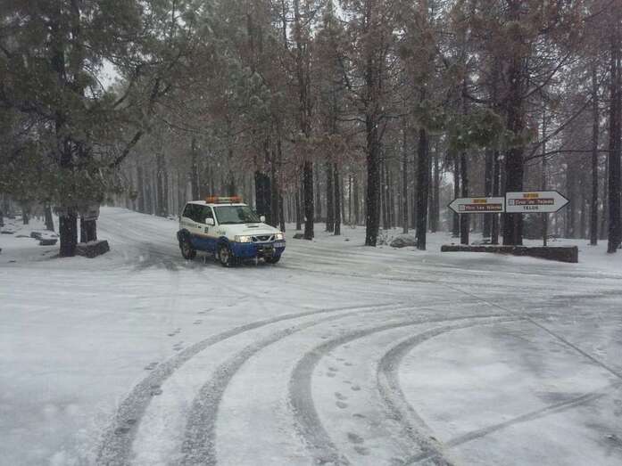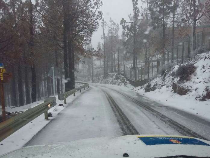 Las carreteras de acceso a la cumbre están cerradas desde las siete de la tarde de ayer lunes. Amanecieron heladas y cubiertas por las nieve en las cotas más altas, de manera que se mantendrán cortadas la de GC-130 (carretera de Los Picos-Cazadores), Pozo de las Nieves y Pico de las Nieves.
