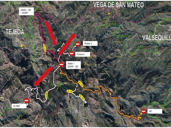 El cierre de la cumbre ha quedado establecido en los puntos de los días anteriores: Cruz de Tejeda, Ayacata, Cazadores y Cueva Grande desde la entrada de Camaretas.