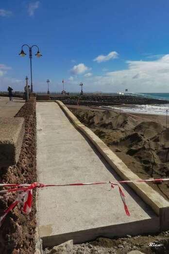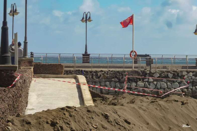 Telde.- La Demarcación de Costas ultima las obras de construcción de una rampa de acceso para personas con movilidad reducida a la arena de la playa de Melenara desde la avenida marítima.