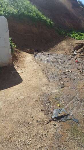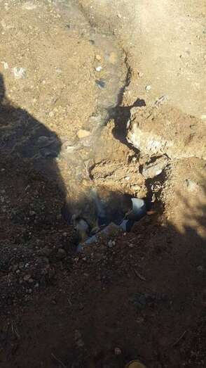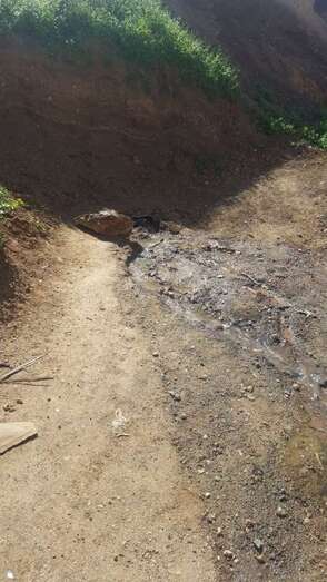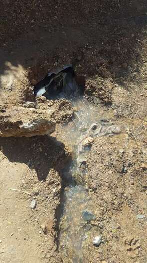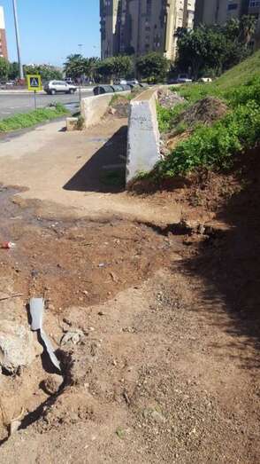 Telde.- Más de hora y media lleva expulsando agua blanca una tubería rota que surca una ladera próxima a la entrada al Valle de Jinámar desde la carretera general GC-100, en el sector de Eucaliptos II.