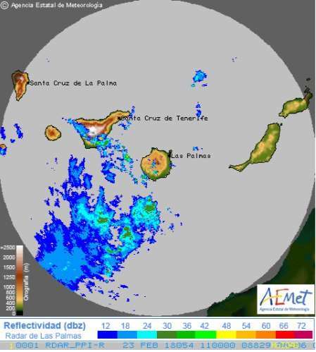 Una gran masa de nubosidad se aproxima en estos momentos al Archipiélago. Entraría por el suroeste de Gran Canaria descargando copiosas precipitaciones.