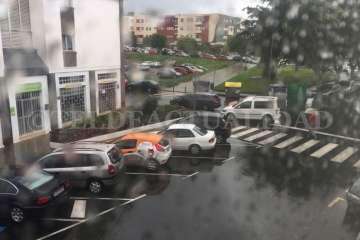 La primera de las tres borrascas que se espera que atraviesen Gran Canaria en los próximos días ya ha comenzado a descargar sobre la ciudad de Telde. Un fuerte chaparrón sorprendía poco después de las 11.00 horas, descargando de forma intensa y abundante, con hasta 4 litros de agua por metro cuadrado en la zona del Aeropuerto. Por lo general el viento está soplando con poca fuerza en el municipio, aunque se han llegado a registrar picos de hasta 50 kilómetros por hora en el sector de Gando.