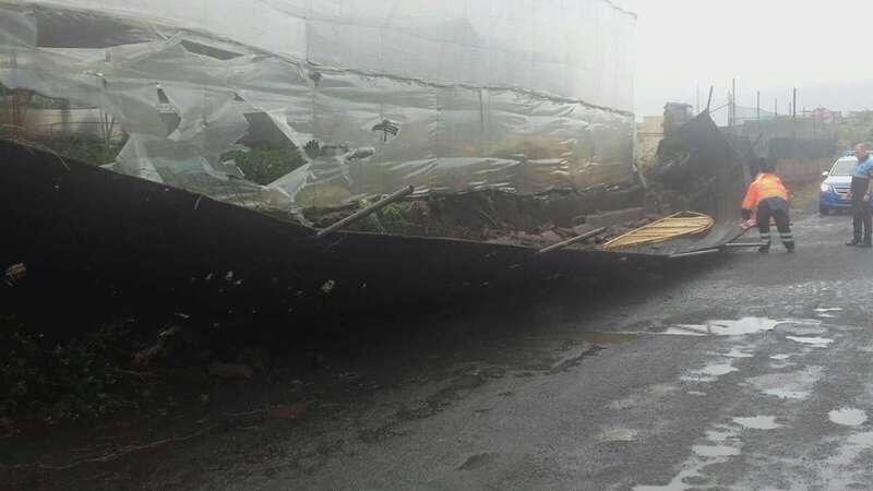 Otro incidente causado por el viento en las últimas horas ha tenido como marco la carretera de Las Huesas a Cruz de Jerez. Allí, los servicios de emergencia han balizado un tramo donde ha caído parte de un muro y un vallado.