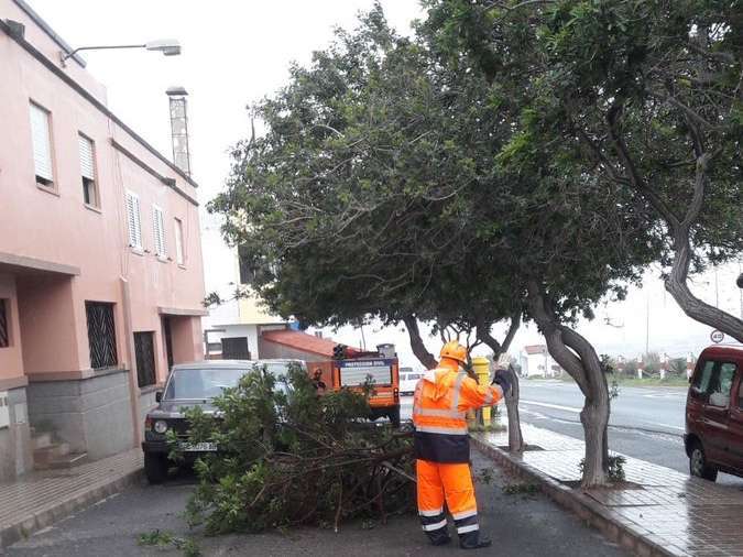 El empeoramiento general del tiempo, con lloviznas y viento racheado, está provocando ya incidencias puntuales en las Islas Orientales como la caída de objetos y ramas a las vías en Telde, la capital y Agüimes.