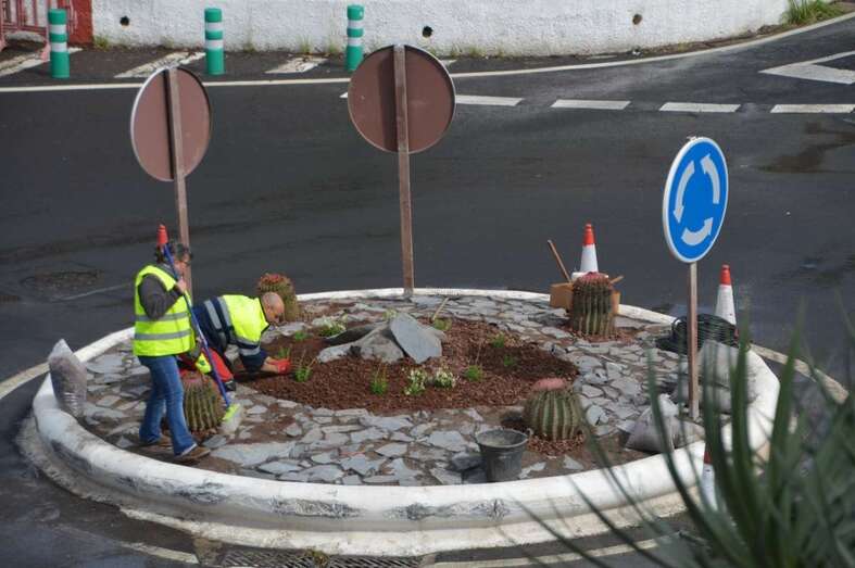 El concejal de Parques y Jardines, Abraham Santana, visitó este lunes esta y otras glorietas del municipio en las que se está actuando dentro del plan de embellecimiento sostenible impulsado por el Gobierno local para comprobar el ritmo de los trabajos y el resultado de los mismos.