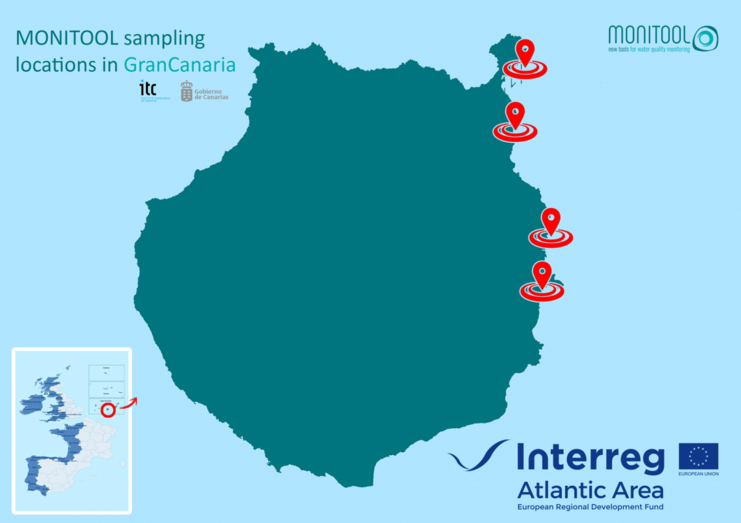 En el caso de Canarias, se han seleccionado cuatro puntos de muestreo en la costa este de Gran Canaria, concretamente en el Puerto de Las Palmas, Jinámar, Taliarte y Gando, lugares en los que está siendo posible llevar a cabo el estudio gracias a la colaboración del Real Club Náutico de Gran Canaria, Endesa y Emalsa, PLOCAN y la Base Aérea de Gando, respectivamente.