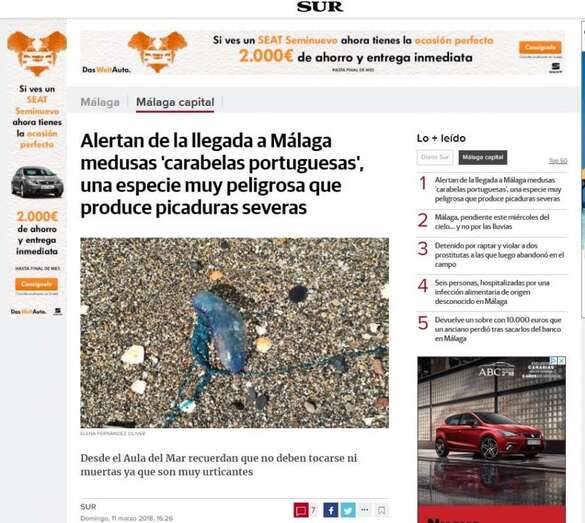 Alertan de la llegada a #Málaga medusas 'carabelas portuguesas', una especie muy peligrosa. https://t.co/l7JUSixgo1