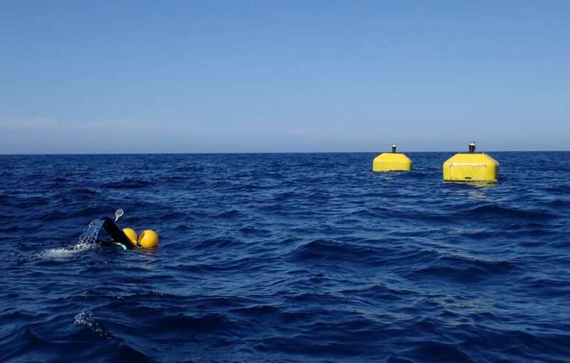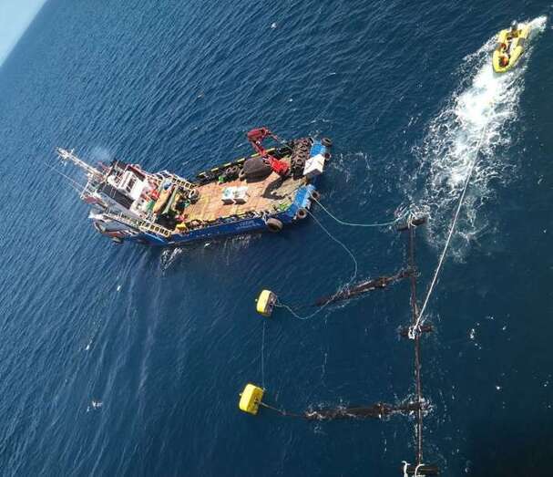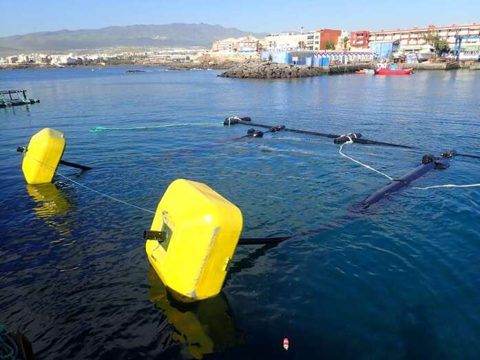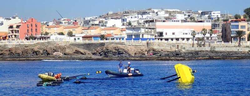 El dispositivo se ha lanzado al agua desde el muelle de Taliarte, y con ayuda de un barco de varias embarcaciones auxiliares se ha arrastrado hasta el banco de pruebas de la Plocan.