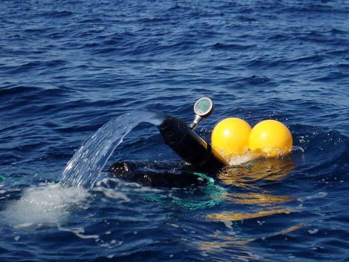Telde.- La empresa noruega Tveter Power prueba estos días en la ciudad de Telde un dispositivo de bombeo impulsado por la energía de las olas. El prototipo, ideado para proporcionar agua de mar a plantas desalinizadoras, se está evaluando en aguas de la bahía de Melenara, banco de pruebas de la Plataforma Oceánica de Canarias (Plocan), un ente científico con sede en Taliarte.