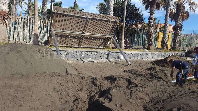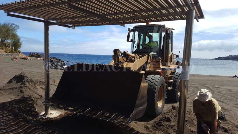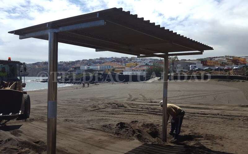 Este es, por ejemplo, el caso de Hoya del Pozo. Una playa en la que los temporales más recientes han debilitado una de sus pérgolas hasta el extremo de que la estructura cedió ante el embate de la naturaleza y acabó tumbada sobre la fina y rubia de esta cala.