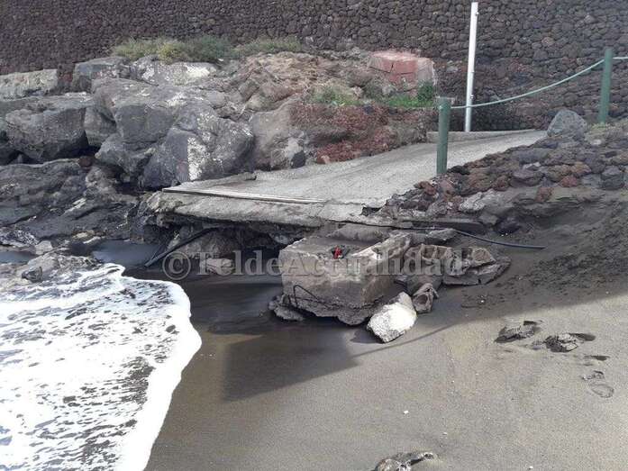 Telde.- El fuerte oleaje ha causado daños este lunes a uno de los accesos a la playa de Melenara desde la avenida marítima a su paso por Clavellinas.