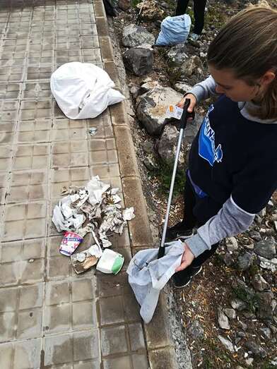 Quince personas conformaron la cuadrilla de voluntarios de Oceans4Life, quienes pertrechados con guantes, mascarillas y ganchos de bastón para la recogida de los residuos retiraron 15 sacos con restos de envoltorios plásticos, principalmente de comida basura, aunque también destacaba la presencia masiva de colillas, preservativos, toallitas de higiene íntima, excrementos de perros y otros restos, tales como utensilios para el consumo de drogas.