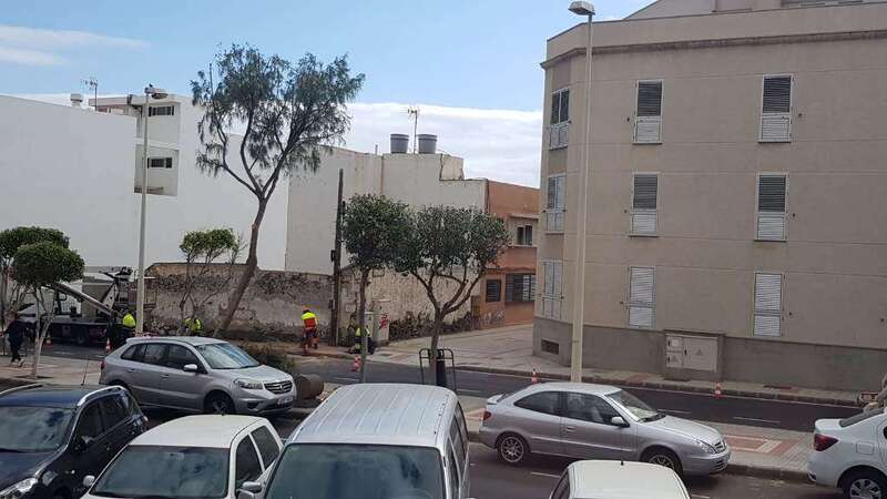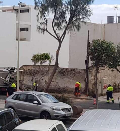Telde.- El viejo ejemplar de pino marítimo (Casuarina equisetifolia) que representaba un peligroso obstáculo para las personas que transitan por la estrecha acera de la Avenida Américo Vespucio, esquina calle de Juan Álvarez Jiménez, fue talado este lunes por el personal de Parques y Jardines para evitar males mayores