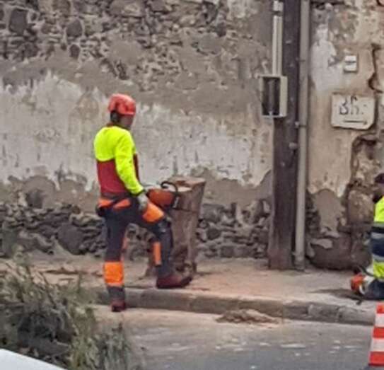Operarios en momento de podar el árbol (Foto TA) Operarios en momento de podar el árbol (Foto TA)