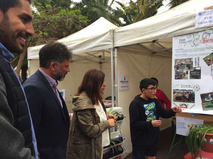 La alcaldesa, Carmen Hernández, el concejal de Medioambiente, Abraham Santana, y el consejero insular del área, Miguel Ángel Rodríguez, recorrieron las carpas en las que además de brindar información acerca de la culebra real de California, el pinzón azul, el reciclaje o el servicio de tratamiento de residuos del Cabildo de Gran Canaria, pudieron disfrutar con talleres y juegos.