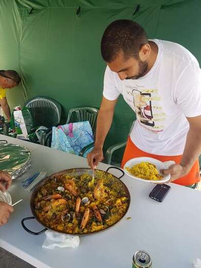 El restaurante Venecia agasajó a los participantes en esta iniciativa medioambiental con varias paellas, que fueron degustadas en unas carpas dispuestas en el antiguo espigón del muelle de Melenara.