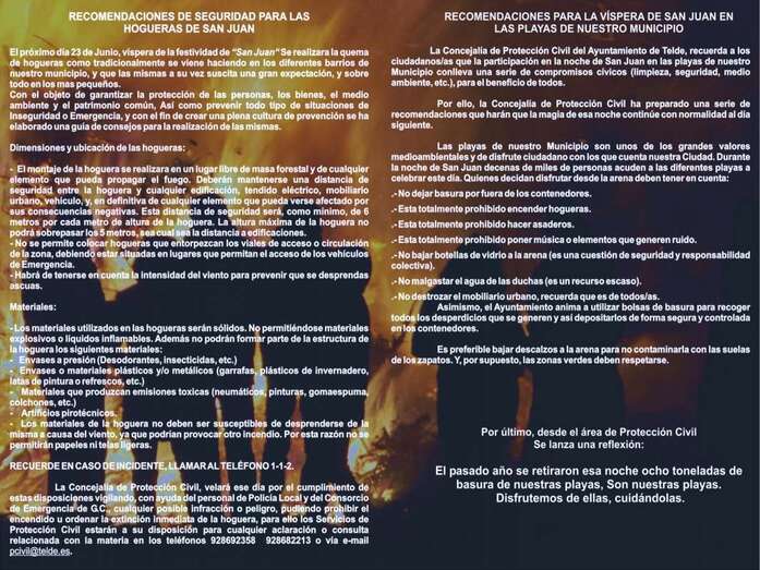 El concejal de Seguridad, Juan Martel, explica que aunque no es obligatorio, se recomienda a las personas que vayan a encender fuegos que presenten una instancia en el Registro Municipal antes del 21 de junio informando del lugar, la persona responsables, las medidas de seguridad o autoprotección que se van a adoptar, un plano de la situación exacta y un número de teléfono de contacto.