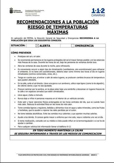 Ante esta situación de alerta decretada por la Dirección General de Seguridad y Emergencias del Gobierno de Canaria (DGSE), y tambíen en vistas al aviso amarillo emitido por la Consejería de Sanidad, el Ayuntamiento ha activado el Plan de Emergencias Municipal (PEMU).