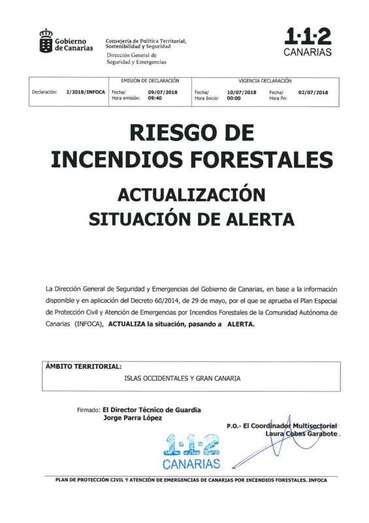Al calor, hay que sumar la situación de riesgo por incendio forestal. La DGSE emitía este lunes una alerta que entrará en vigor a partir de esta medianoche en Gran Canaria, Tenerife, La Palma, La Gomera y El Hierro.