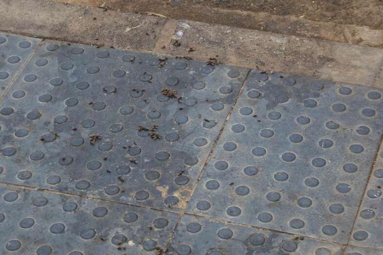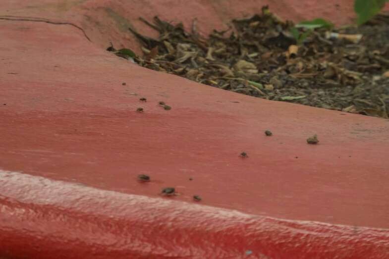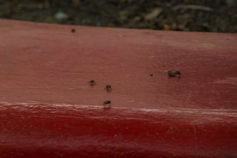 A pesar de que también se han dejado notar en el cercano núcleo de Salinetas, las moscas se concentran en Melenara, casi por cualquier sitio. Ya sea en las viviendas o en espacios al aire libre como la propia playa o en las pequeñas plazas que suelen frecuentar los más mayores del barrio. Caso por ejemplo de la plazoleta de la calle Luis Morote, en donde además esta situación se ve acrecentada por la cercanía de los contenedores de basura.