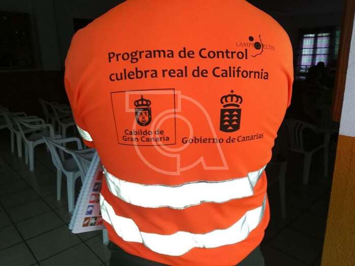 A partir de las 19.30 horas, en el local vecinal, el personal de la empresa del Gobierno regional proyectó un video y se repartieron ejemplares de una publicación sobre especies de Gran Canaria y cómo protegerlas y folletos de cómo actuar ante la localización de una serpiente real de California. Aportaron también números de teléfonos a disposición de los vecinos para avisar de la presencia de culebras.