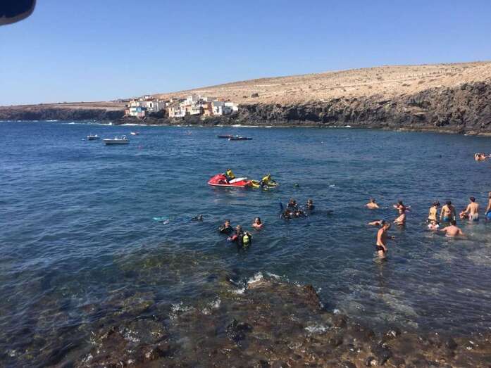 En las labores acometidas este sábado colaboraron también efectivos de Proactiva, empresa que presta el servicio de salvamento y socorrismo en las playas de Telde.