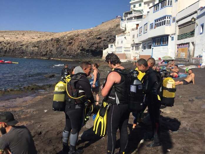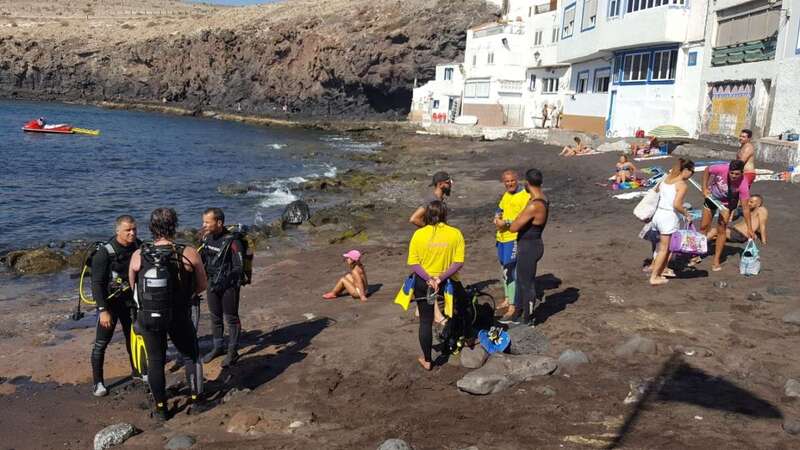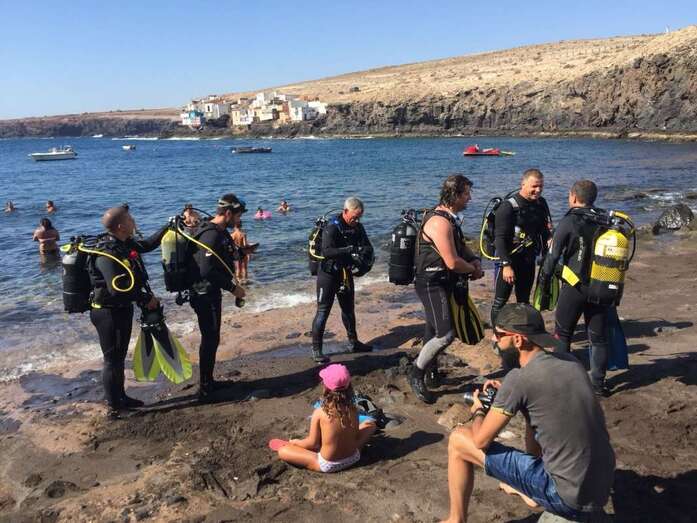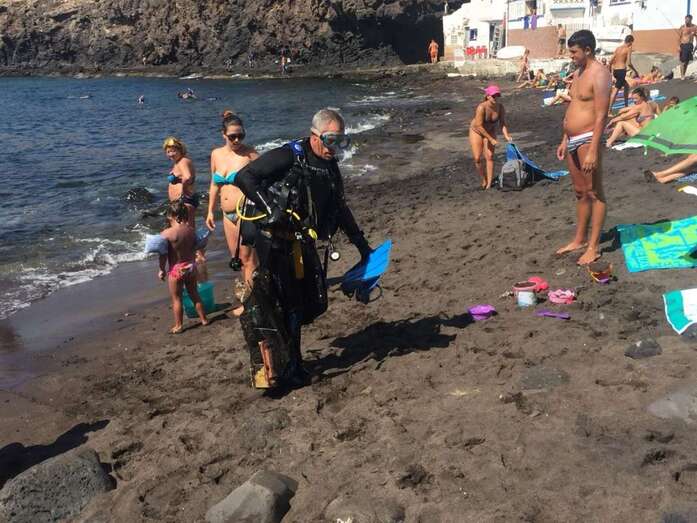 Un equipo de 30 buceadores y 10 voluntarios saca unos100 kilógramos de residuos de las aguas de esta cala teldense