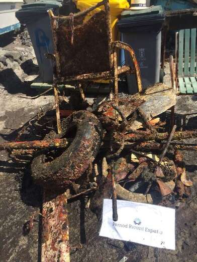 Un buceador saca una silla (Foto TA) Un buceador saca una silla (Foto TA)