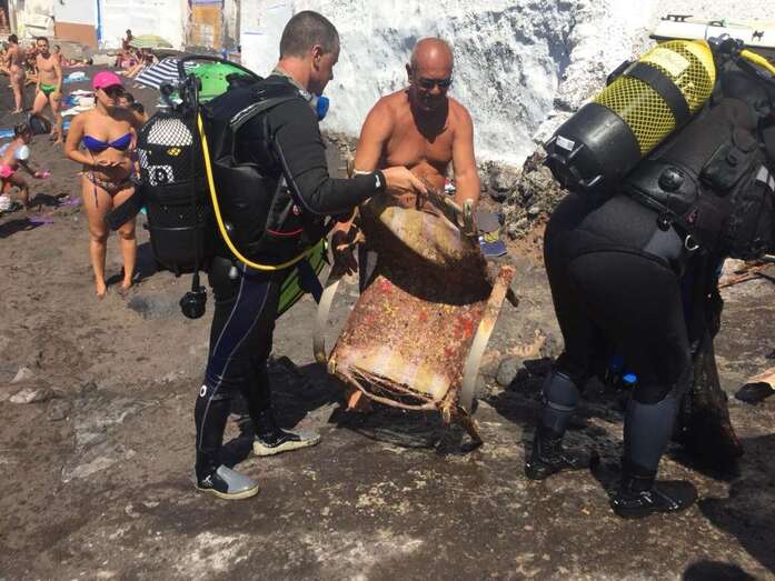 La intervención impulsada por la Concejalía de Medio Ambiente, al frente de la que está el concejal nacionalista Abraham Santana (NC), y la comisión de fiestas de Tufia, contó con la participación de 30 buceadores de los clubes teldenses Henrisub y Gran Azul y unos 10 voluntarios.
