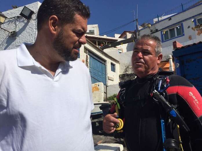 El edil Diego Ojeda, concejal responsable del Distrito Costa y accidentalmente de Medio Ambiente, supervisó las tareas. También estuvo presente la exedila María González Calderín, presidente de honor del Club de Buceo Henrisub.
