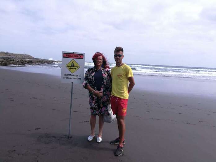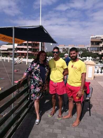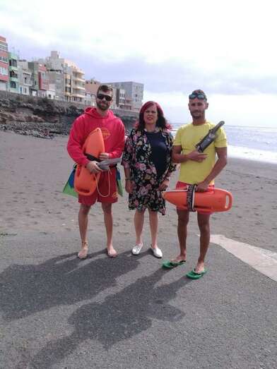 Telde.- La concejala accidental de Playas, Saro Sosa, felicitó al socorrista que este jueves rescató a una joven en apuros en Salinetas durante una visita a las diferentes playas del municipio para agradecer la labor que desarrolla el personal municipal y de la empresa Proactiva.
