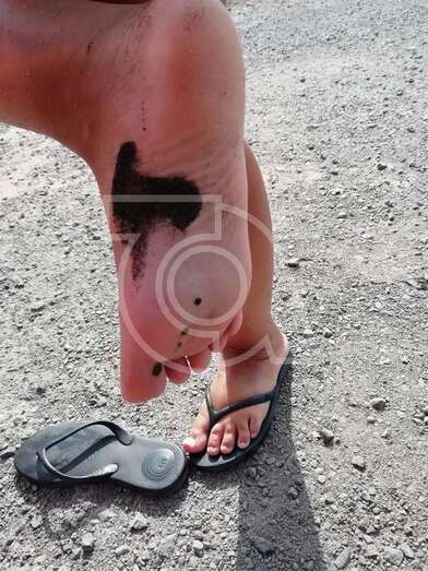 Los afectados por esta contaminación han remitido a TELDEACTUALIDAD imágenes que muestran sus pies manchados por lo que parece ser piche o alquitrán.