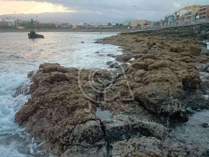 Telde.- Una estampa espectacular dejó a primera hora de esta noche la segunda bajamar del día en la playa teldense de Melenara.