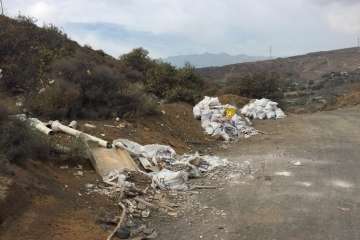 Esta montaña de residuos, que fue usada como vertedero de la Cinsa, se halla justo en el margen costero de la calle Pescador, en el ya de por sí muy maltrecho polígono industrial de Salinetas, a unos metros de una joya arquitectónica, el edificio Polifemo, que precisamente funcionó durante años como almacén de pirita. Entiende que ese vertido contamina la costa y que ha de ser retirado. Para colmo, advierte de que la erosión producto del paso de los años (la Cinsa cesó su actividad como fábrica en 1985) está abriendo calvas en aquella capa de tierra que le echaron por encima, que calcula que no supera los 20 centímetros, y está facilitando, a su juicio, el potencial efecto contaminante de este residuo.