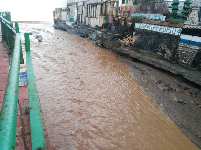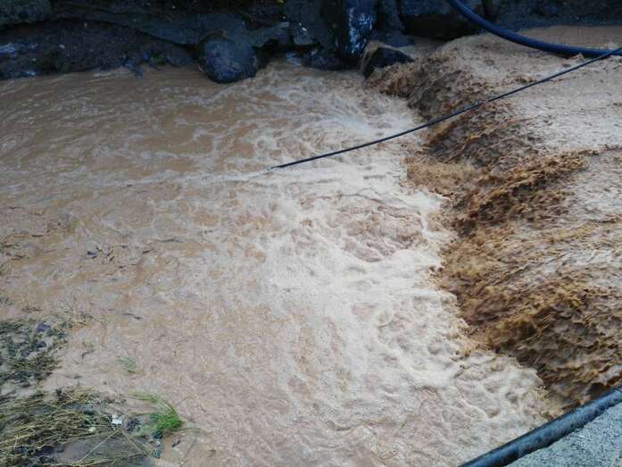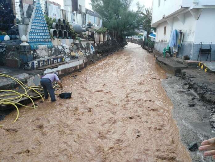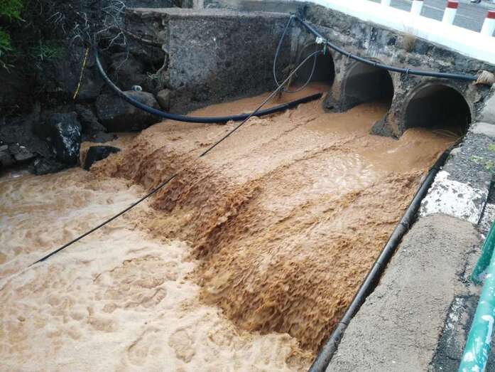 Telde.- Las lluvias de los últimos días están dejando una imagen completamente atípica e inesperada en la playa de Ojos de Garza. El barranquillo que desemboca en esta cala de Telde registraba en la tarde de este sábado un caudal importante que baja desde el centro de la Isla, ya que las lluvias que se han sucedido en la jornada de hoy en el municipio no han sido tan copiosas.