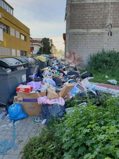 Vecinos de La Herradura se han quejado especialmente del amontonamiento de cajas, botellas y bolsas con residuos domésticos en puntos como la calle de Chile y en las inmediaciones del colegio público Francisco Tarajano. La misma critica llega también de Marpequeña.