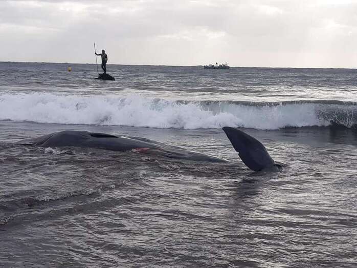 Por el tamaño del cachalote es probable que esta prueba se haga en el vertedero de Juan Grande, como ocurrió con el animal de similares características que fue hallado también muerto en octubre de 2017 en aguas de Telde.
