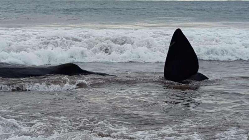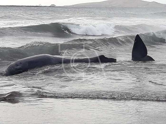 Telde.- Una cría muerta de cachalote de unos 8 metros de largo y de entre 6.000 y 8.000 de peso ha aparecido varada sangrando esta mañana en la playa de Melenara.