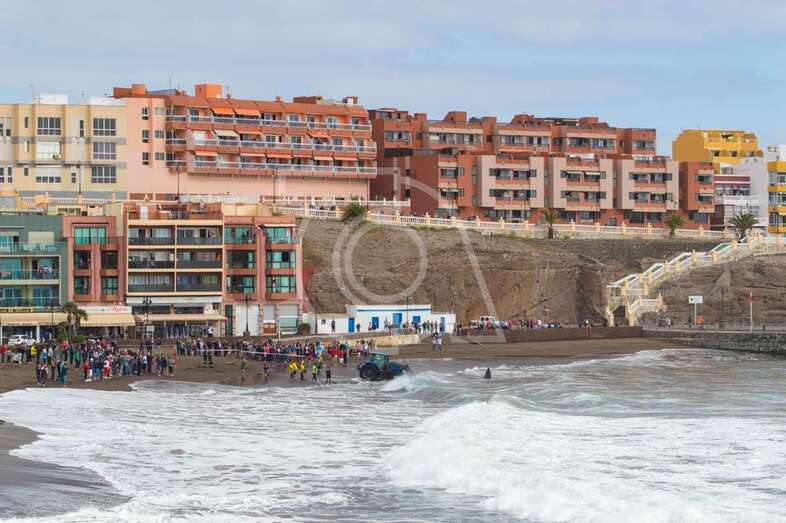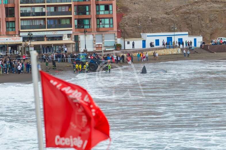 Al filo de las 11.00 horas se iniciaron los trabajos para recuperar el cuerpo del mamífero marino con el concurso de un tractor. Una embarcación de Salvamento Marítimo se aproximó también a Melenara por si fuera necesaria su participación. En la operación de rescate intervinieron bomberos del parque zonal de La Garita, operarios municipales y socorristas de Proactiva, bajo la dirección de técnicos de Medio Ambiente del Cabildo de Gran Canaria.